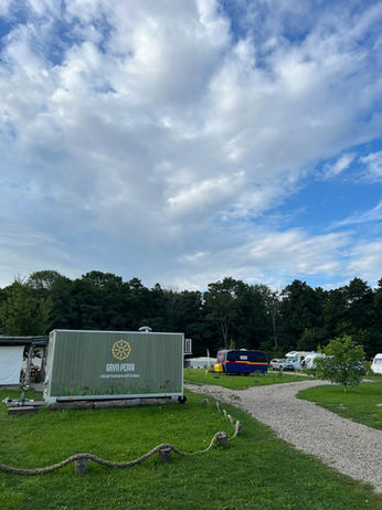 The "4 Winds" gazebo in the middle of the campsite with an oak tree growing in the center is a common space for campsite guests and visitors to the "Gryn peiva" café and events. It is a space for you to relax, eat or read.